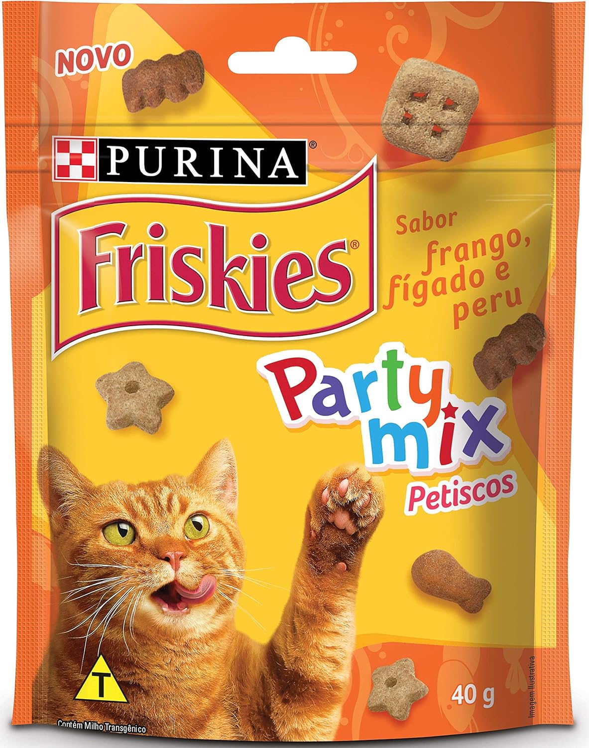 FRISKIES® Party Mix traz muita diversão para o seu gato. Cada delicioso petisco foi desenhado para fazer seu gato explorar diferentes formas, cores, sabores e aromas.